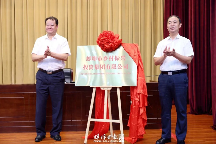 會上,市委副書記、懷遠縣委書記王慶武,副市長吳永彬共同為蚌埠市鄉村振興投資集團有限公司揭牌。