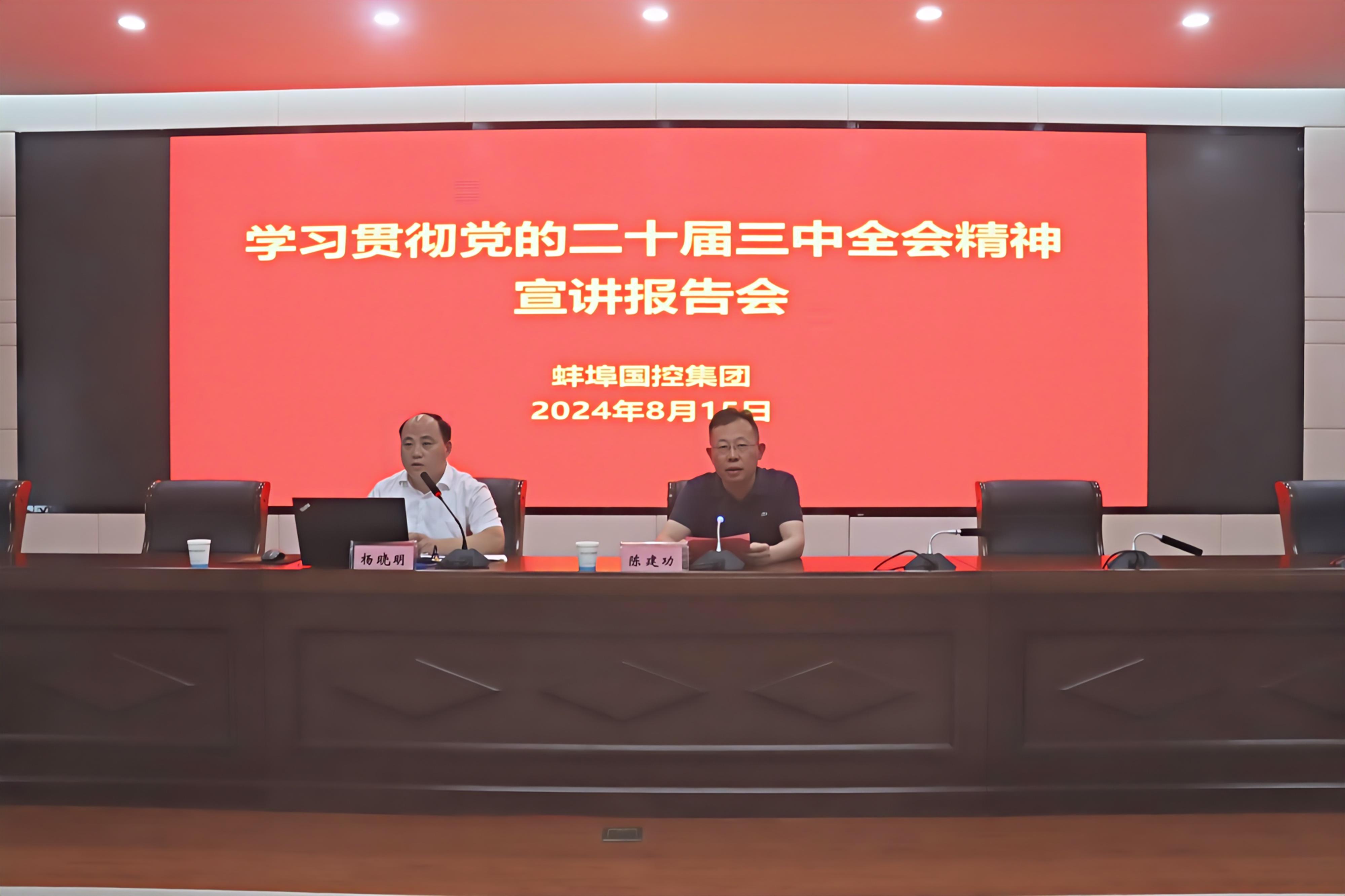 為認(rèn)真學(xué)習(xí)宣傳貫徹黨的二十屆三中全會(huì)精神,推動(dòng)落實(shí)國有企業(yè)改革發(fā)展新任務(wù)新要求,8月15日下午,市國控集團(tuán)舉辦學(xué)習(xí)貫徹黨的二十屆三中全會(huì)精神宣講報(bào)告會(huì),會(huì)議邀請(qǐng)市委副秘書長、市委政研室主任楊曉明作主題宣講,集團(tuán)黨委書記、董事長陳建功主持會(huì)議并講話。集團(tuán)領(lǐng)導(dǎo)班子成員、部門負(fù)責(zé)人,所屬子公司領(lǐng)導(dǎo)班子成員和基層黨組織書記代表共計(jì)88人參加會(huì)議。