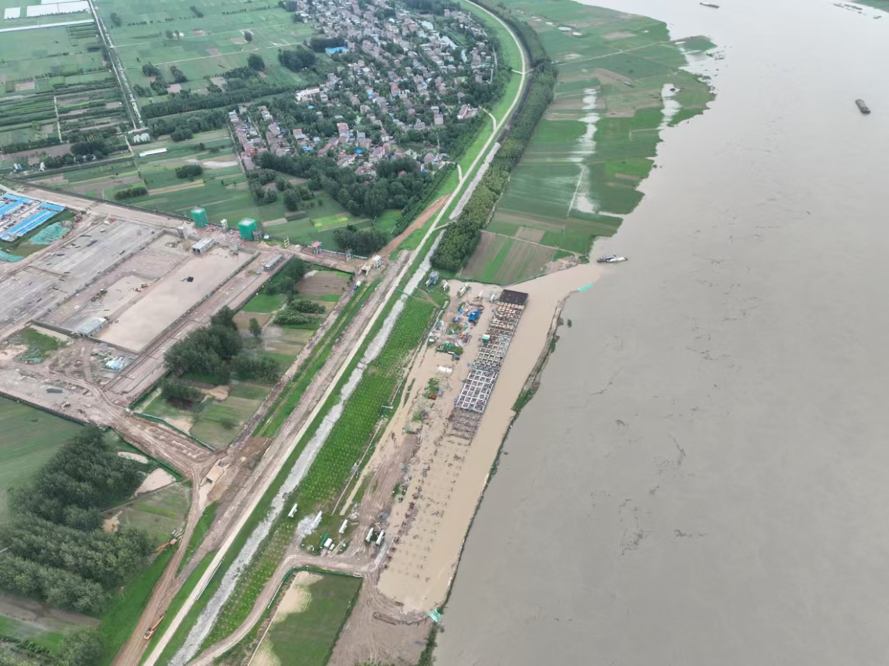 近日,五河縣城南綜合碼頭一期工程港口碼頭后方陸域和前方碼頭施工正在加快推進中。